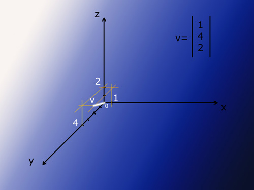 Rappresentazione del vettore V=(1, 4, 2)