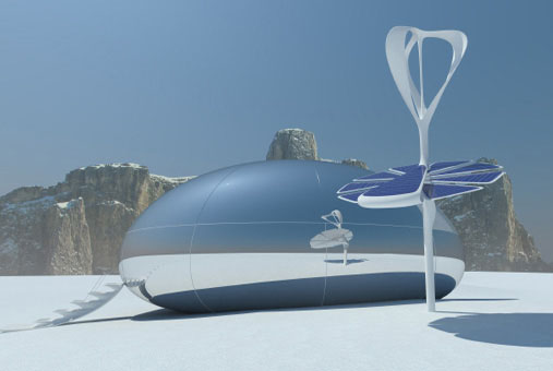 Prototipo di Allogio per due persone. Sarà pronto nel 2010 ed è un’idea dell’architetto inglese Ross Lovegrove. Verrà installato e testato a 2100 metri in Alta Badia.