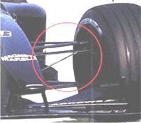 In primis… La performate Red Bull di Adrian Newey adotta sospensioni PULL ROD anziché PUSH ROD per il valido motivo tecnico che un “tirante” (PULL) a parità di forze in gioco può essere realizzato con un dimensionamento meno generoso a tutto vantaggio dell’aerodinamica. Ed il motivo che ha spinto Newey a questa soluzione è proprio la ricerca della massima performance aerodinamica ottenibile. Ma questa soluzione non è nuova, essa infatti è già stata adottata dalle Arrows degli anni ’90 (Arrows A21) le quali ottennero le migliori velocità di punta del parco macchine proprio grazie a questa soluzione. La foto sopra a sinistra raffigura il sistema pull rod già adottato dalla Arrows oltre 15 anni fa.
